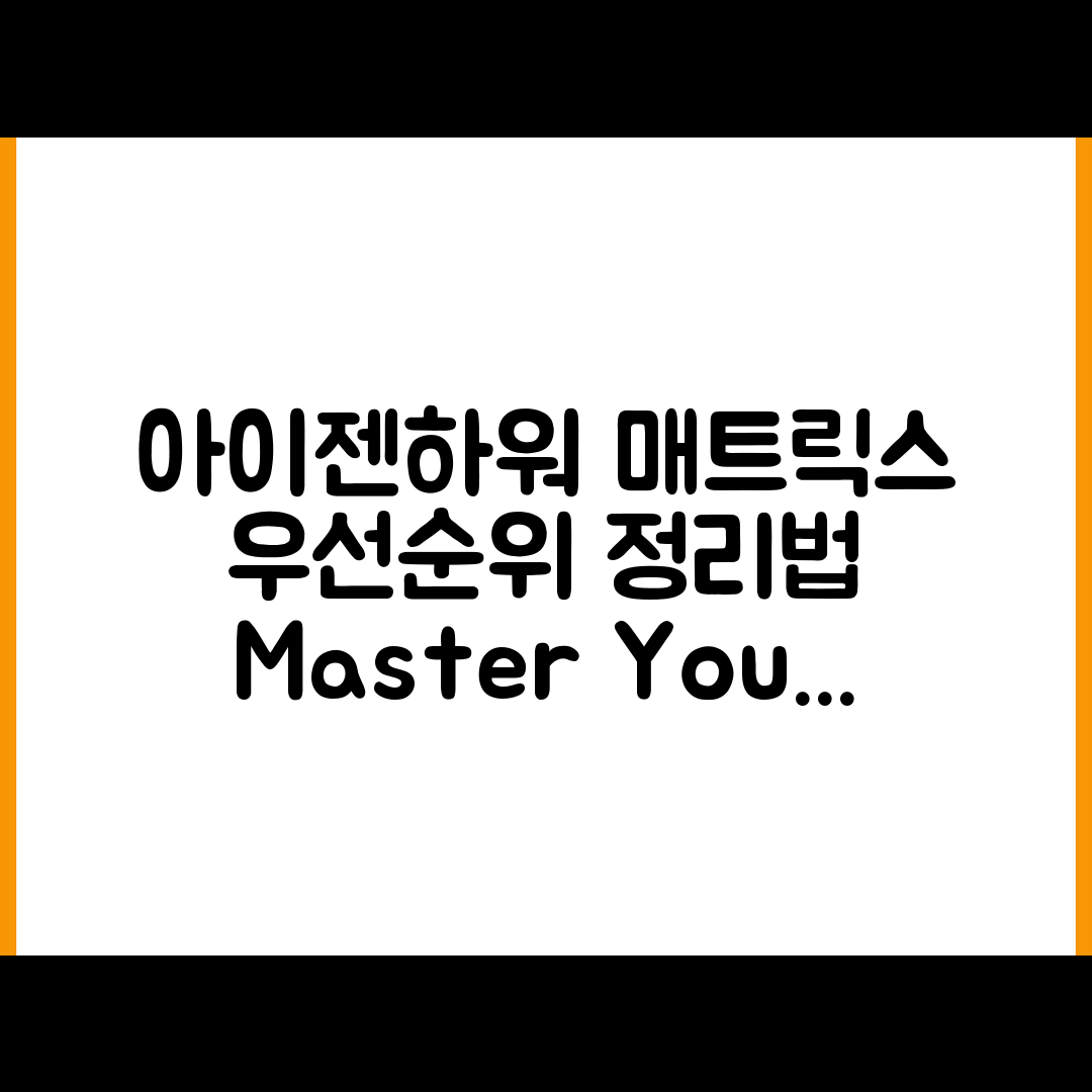 이 매트릭스를 활용하세요. 긴급한 업무와 중요한 업무를 동시에 고려하면 효율적으로 시간을 관리하고 성과를 높일 수 있습니다. 지금부터 자세히 알아보겠습니다.